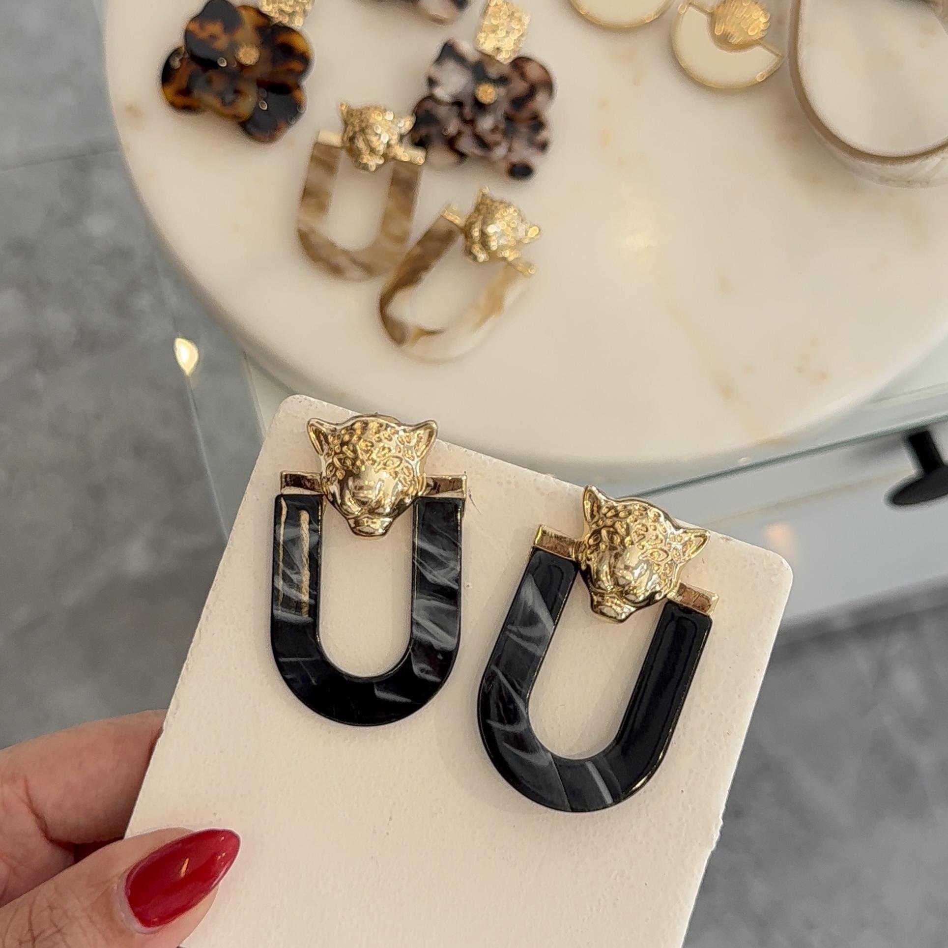 Gold Aslan Siyah Küpe
