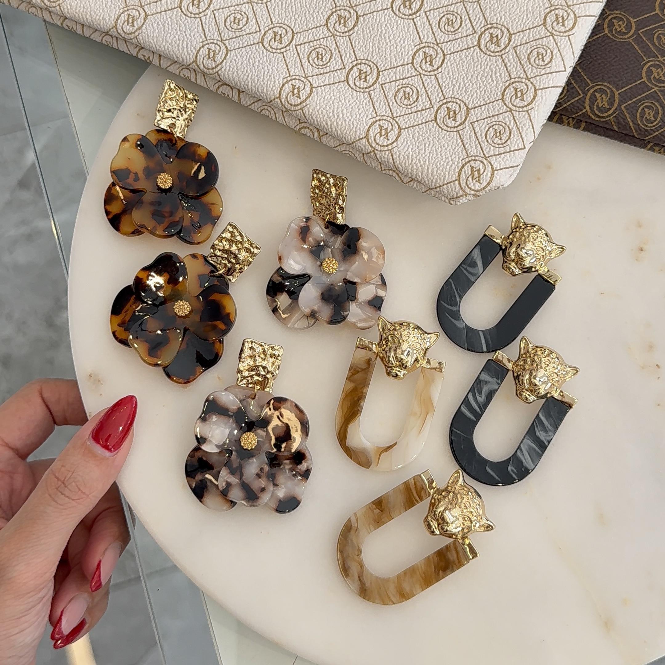 Gold Plaka Leopar Küpe(AçıkRenk)