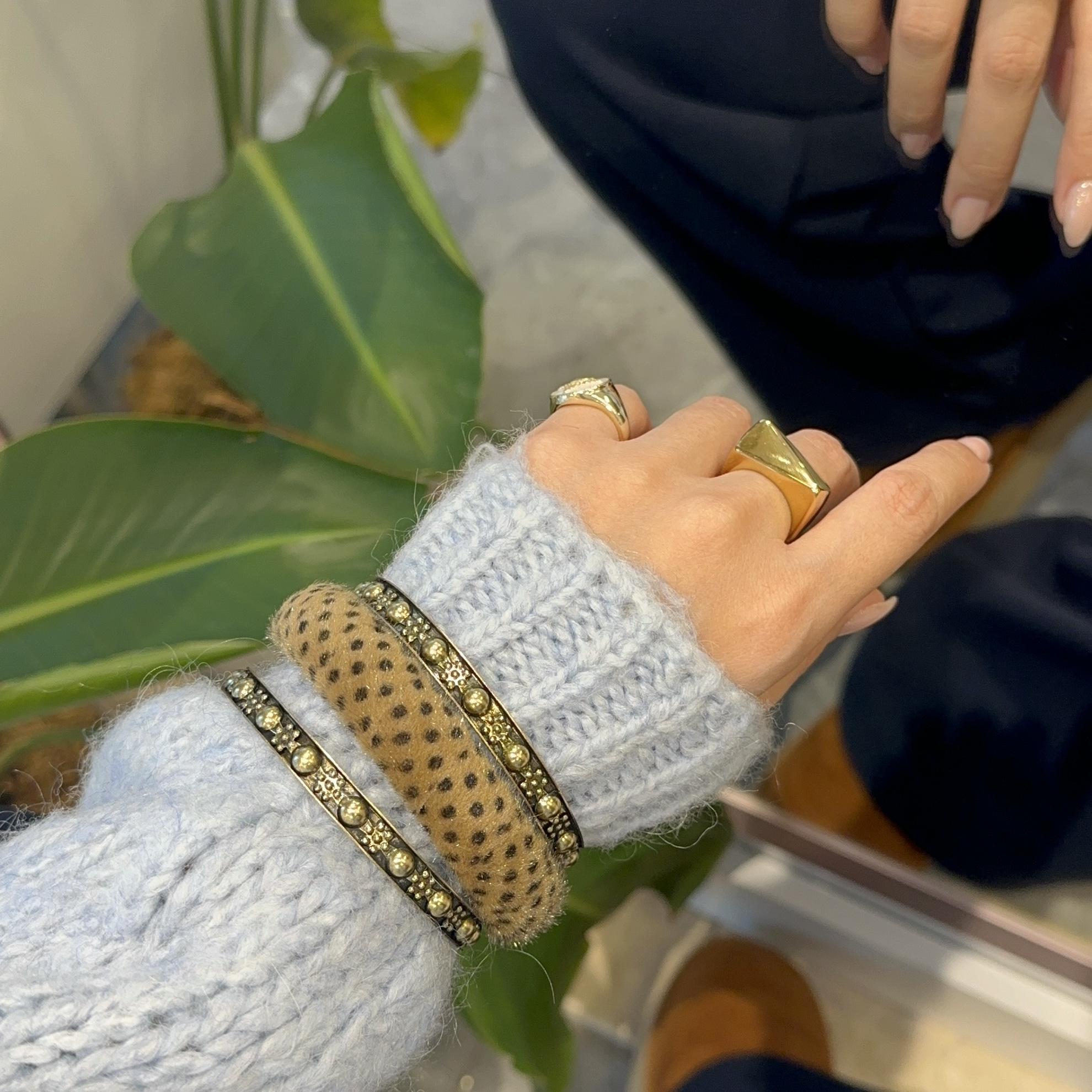Kahverengi Puantiyeli Üçlü Kalın Bilezik