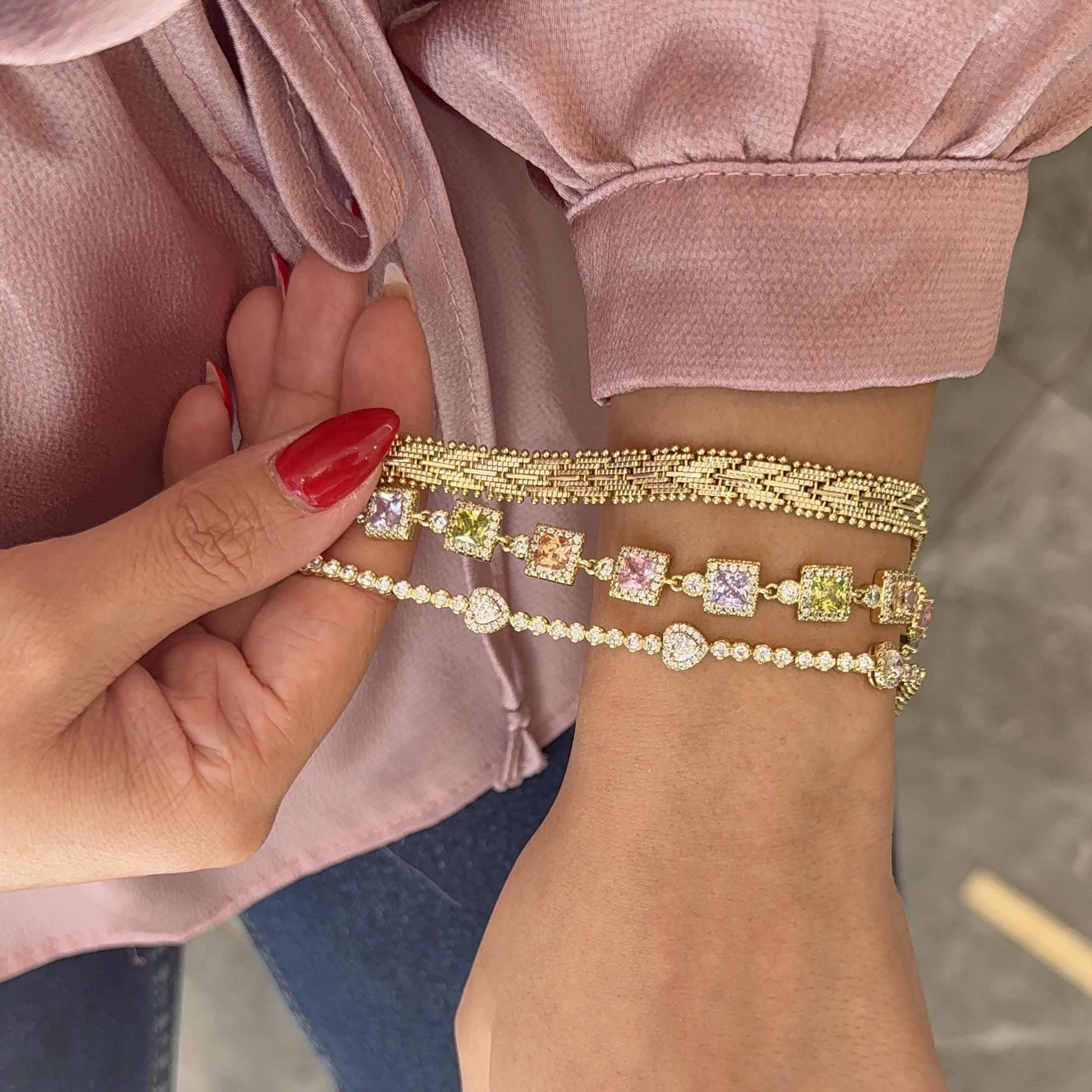 Işıltısını hiç kaybetmeyen 14 ayar altın renginde çelik bileklik.
