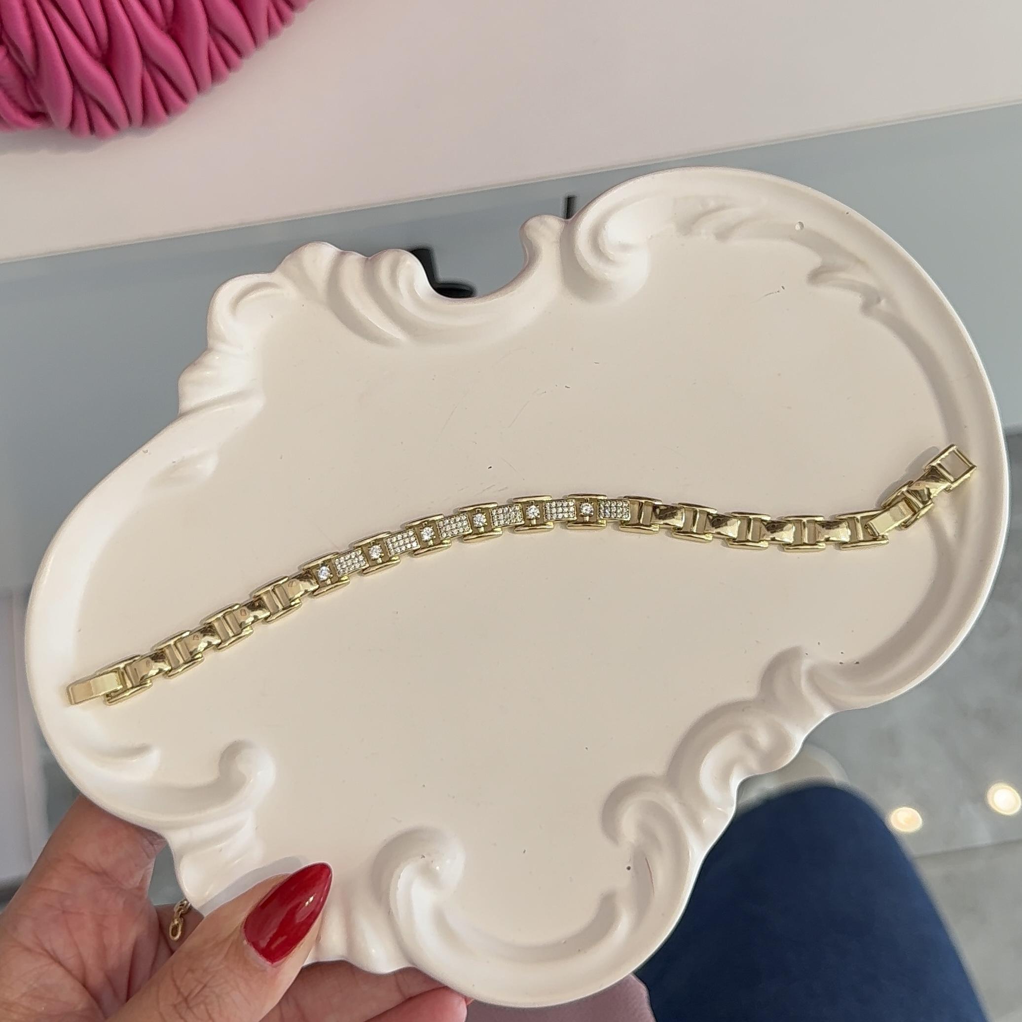 Kare Sıralı Taş Çelik Bileklik(14Ayar Renginde)