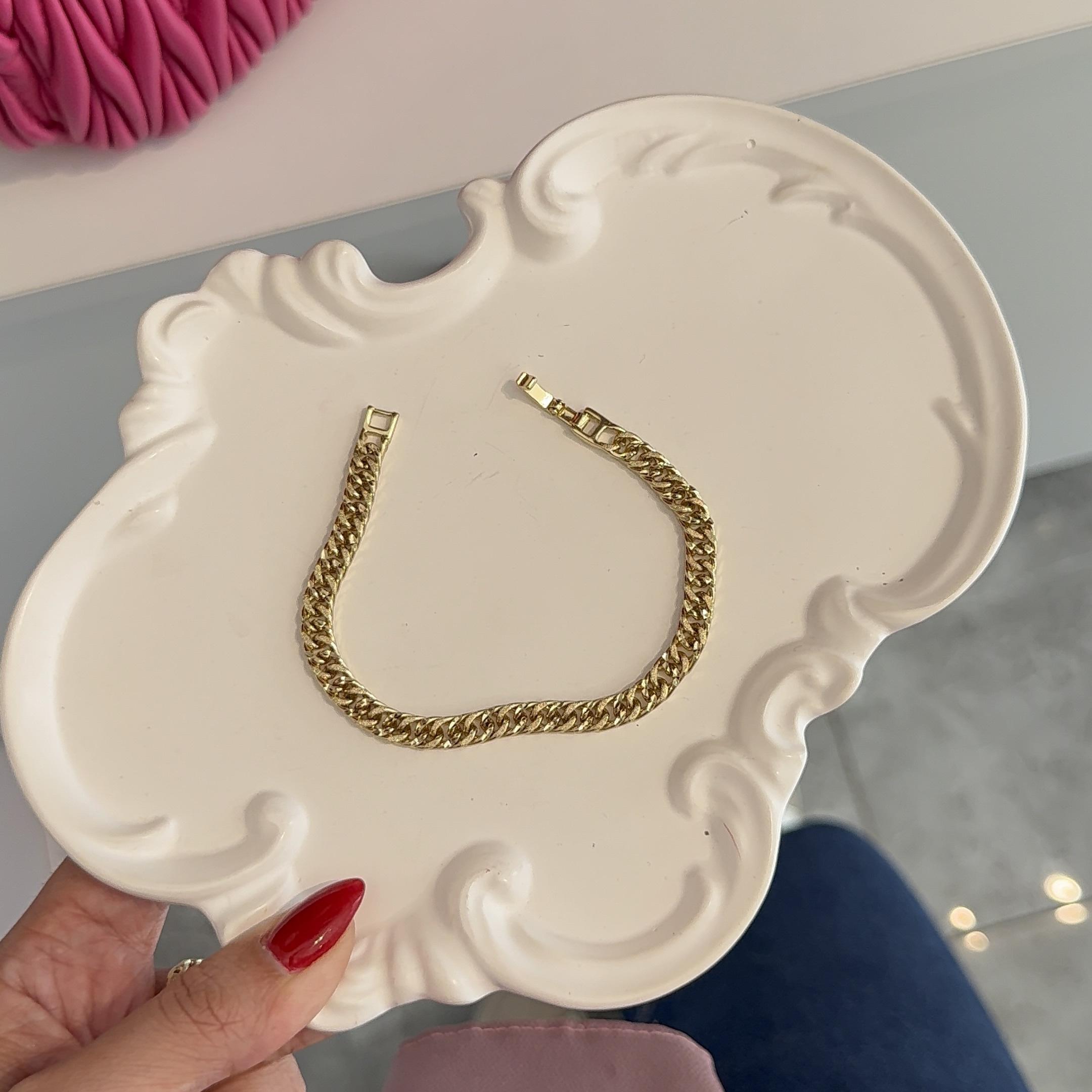 Işıltısını hiç kaybetmeyen 14 ayar altın renginde çelik bileklik.