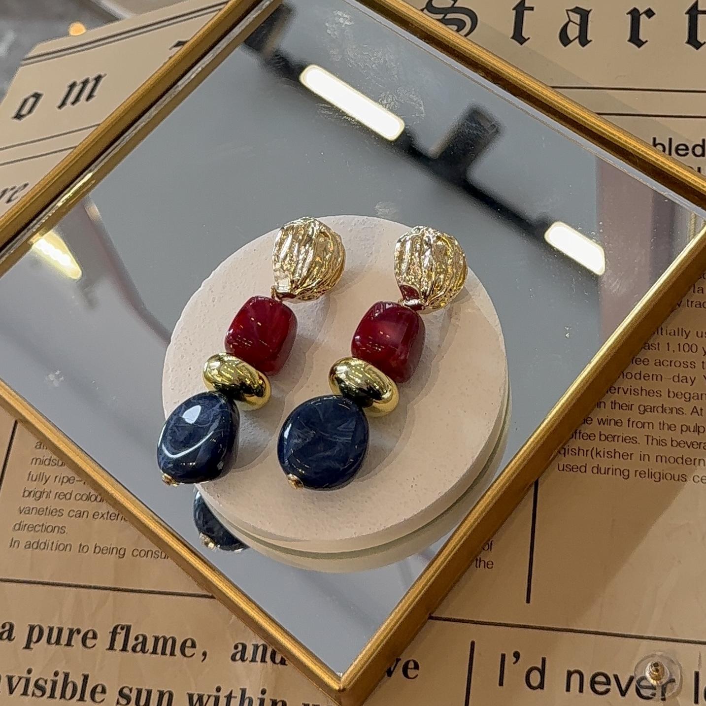 Lacivert Taş Kombinli Küpe