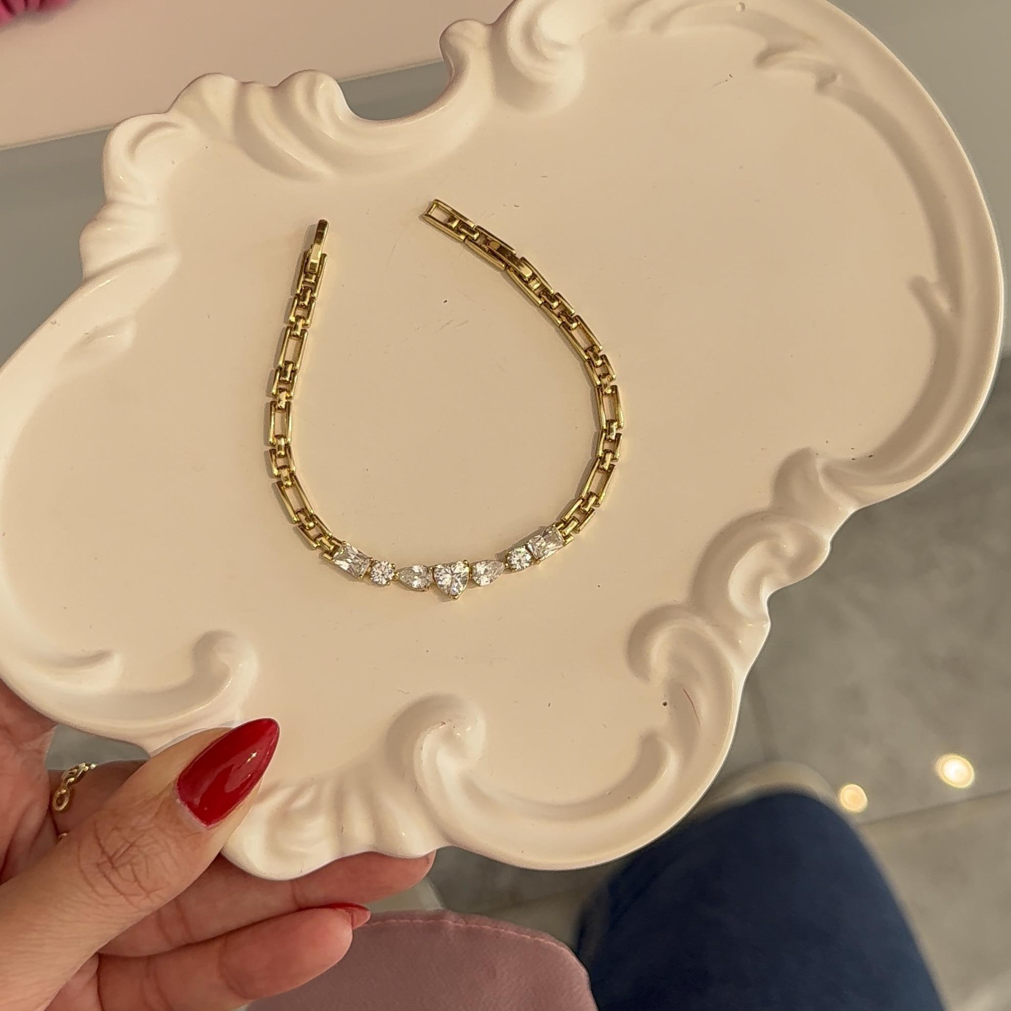 Ortası Taşlı Kalp Çelik Bileklik(14Ayar Renginde)