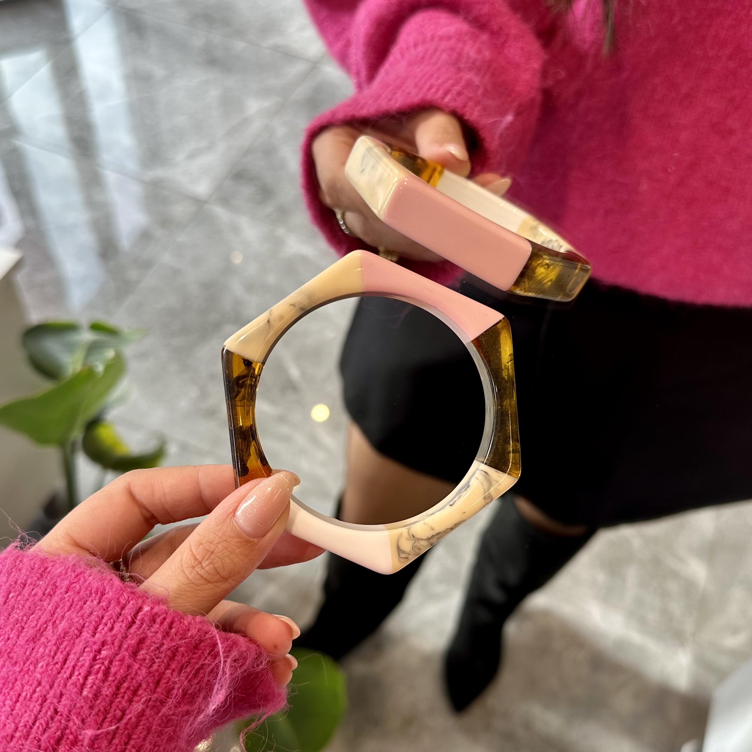 Pembe Detay İri Kemik Bilezik