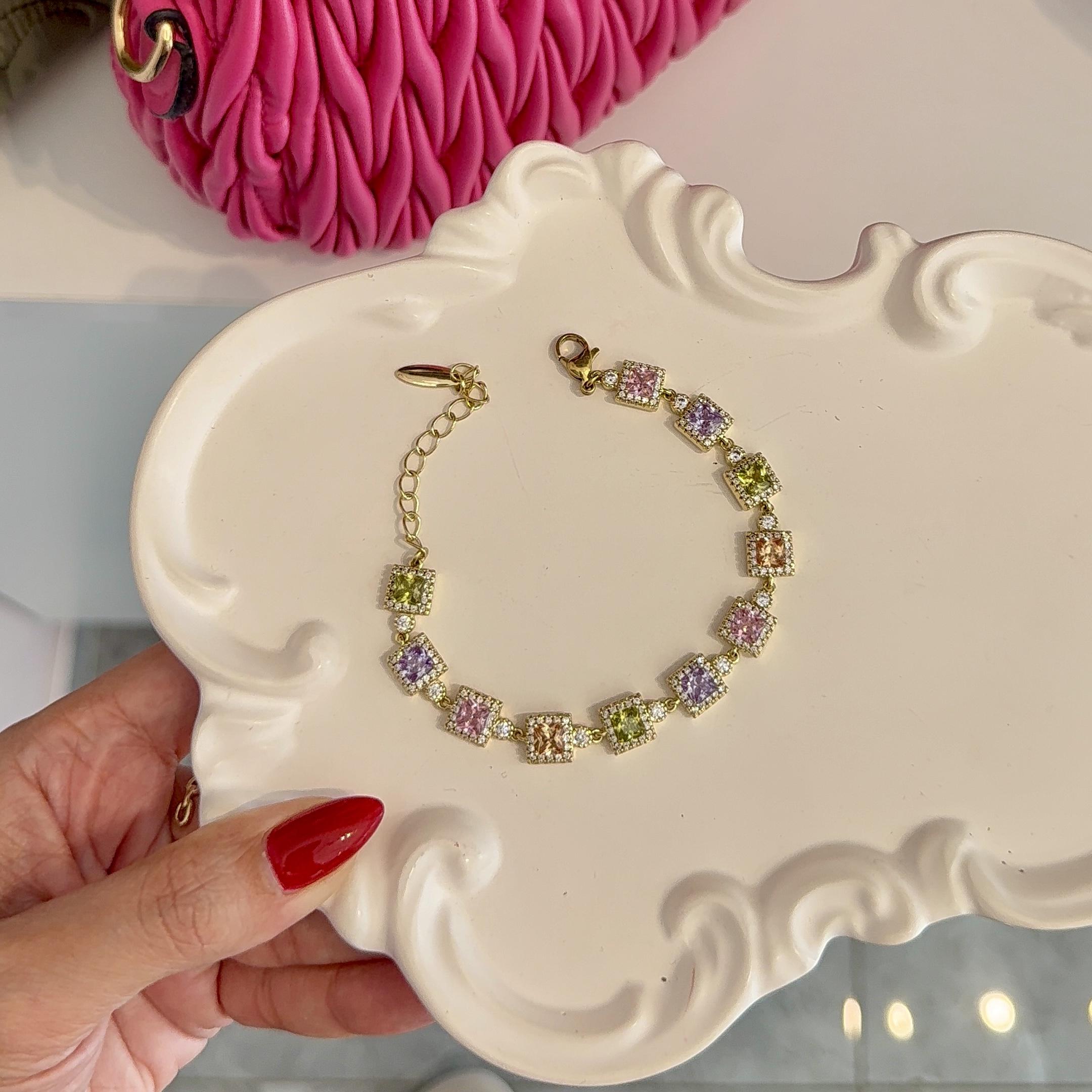 Renkli Kare Taşlı Çelik Bileklik(14Ayar Renginde)