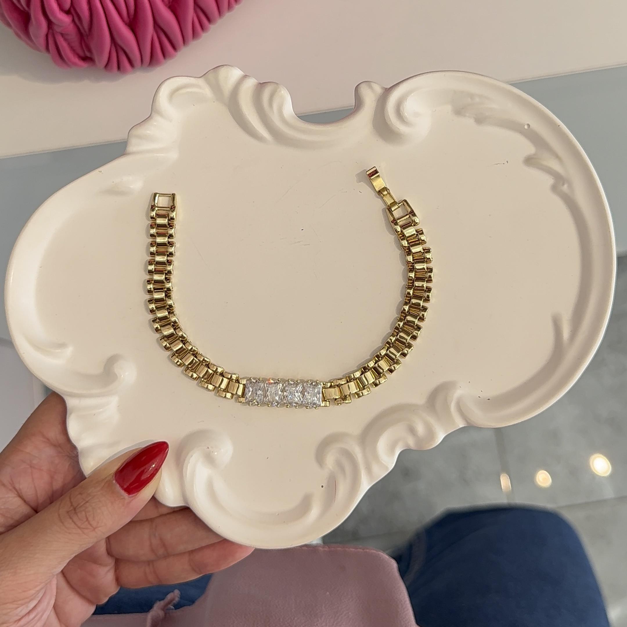 Rolex Kordon Taşlı Çelik Bileklik(14AyarRenginde)