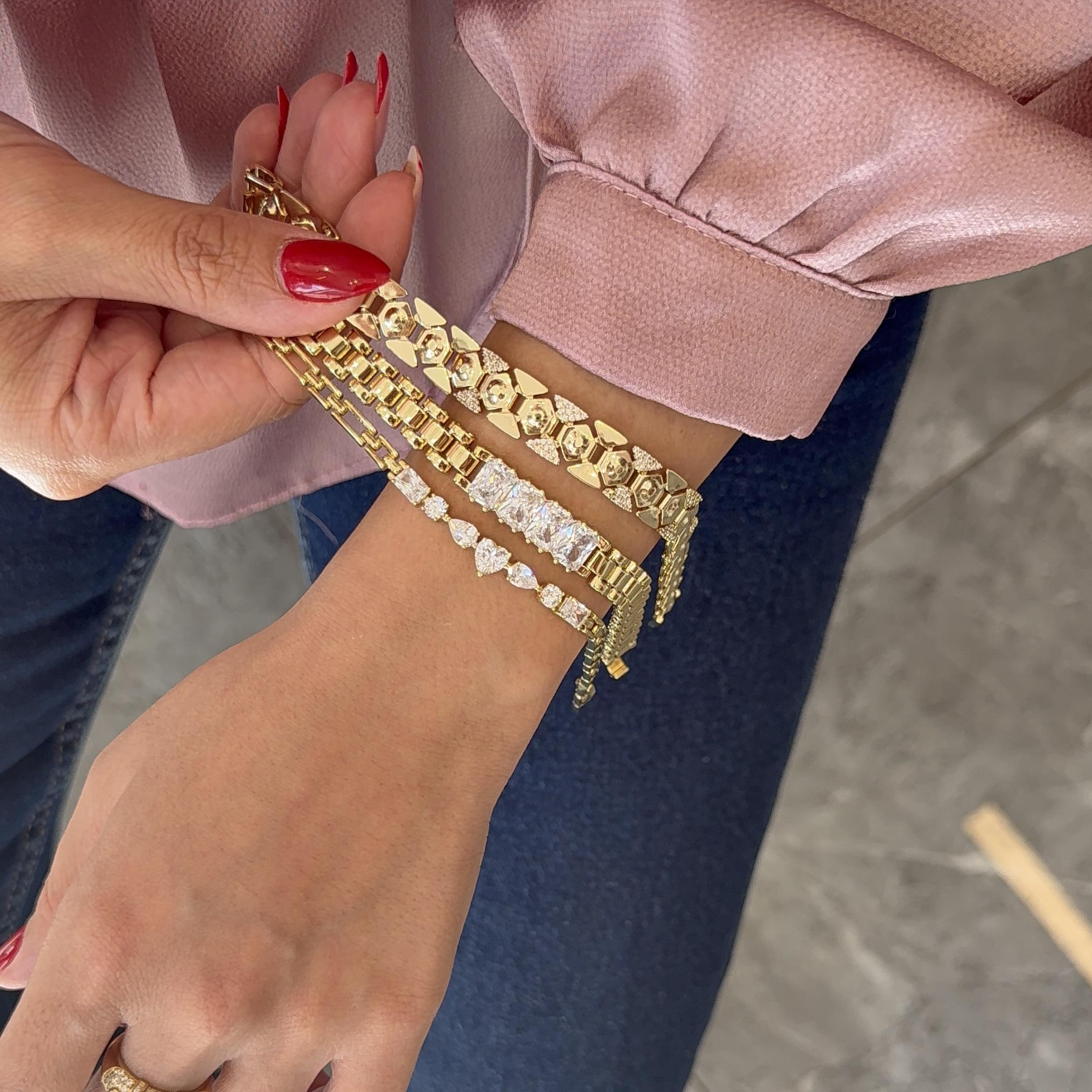 Işıltısını hiç kaybetmeyen 14 ayar altın renginde çelik bileklik.