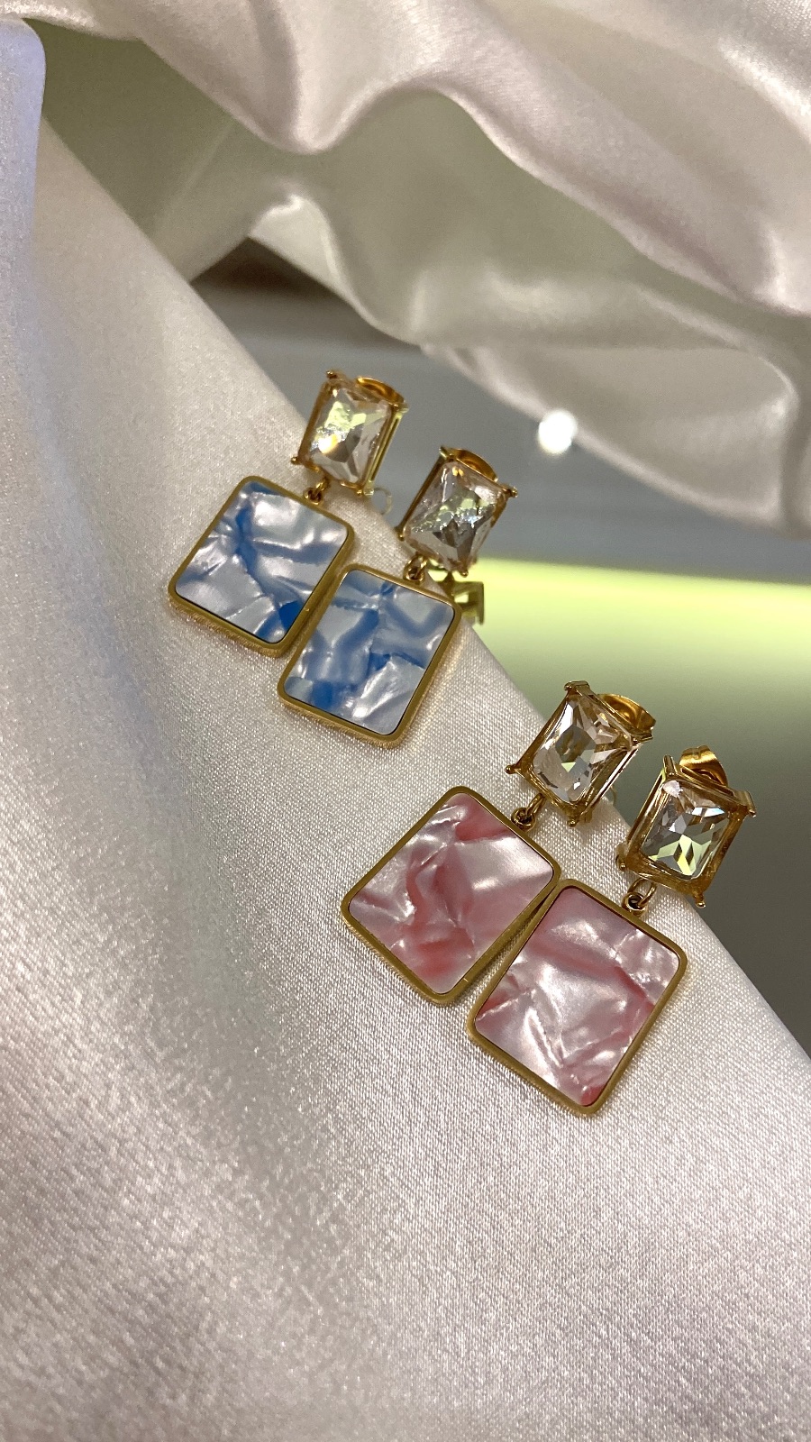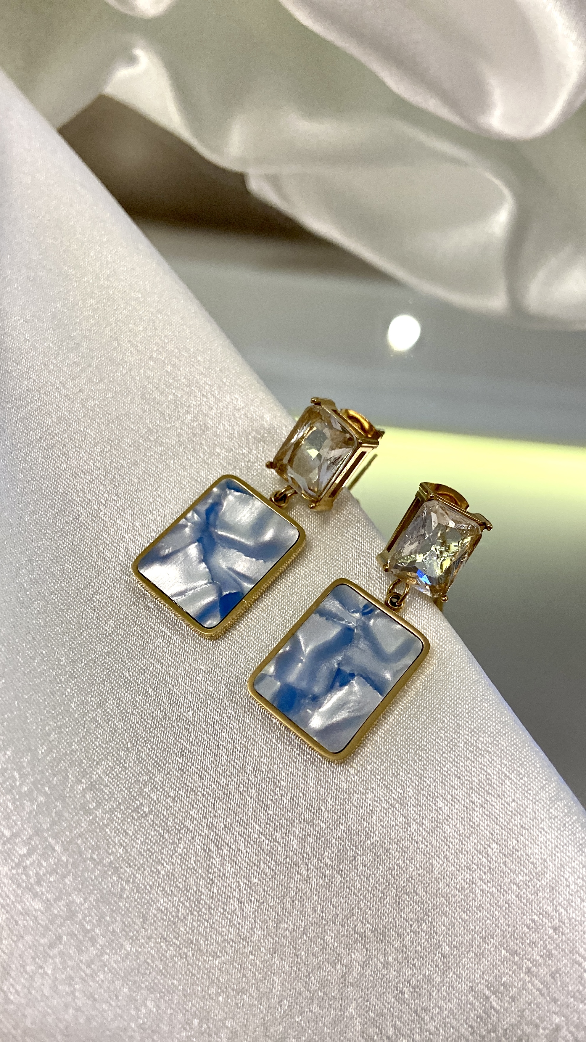 Taşlı Mavi Mineli Çelik Küpe