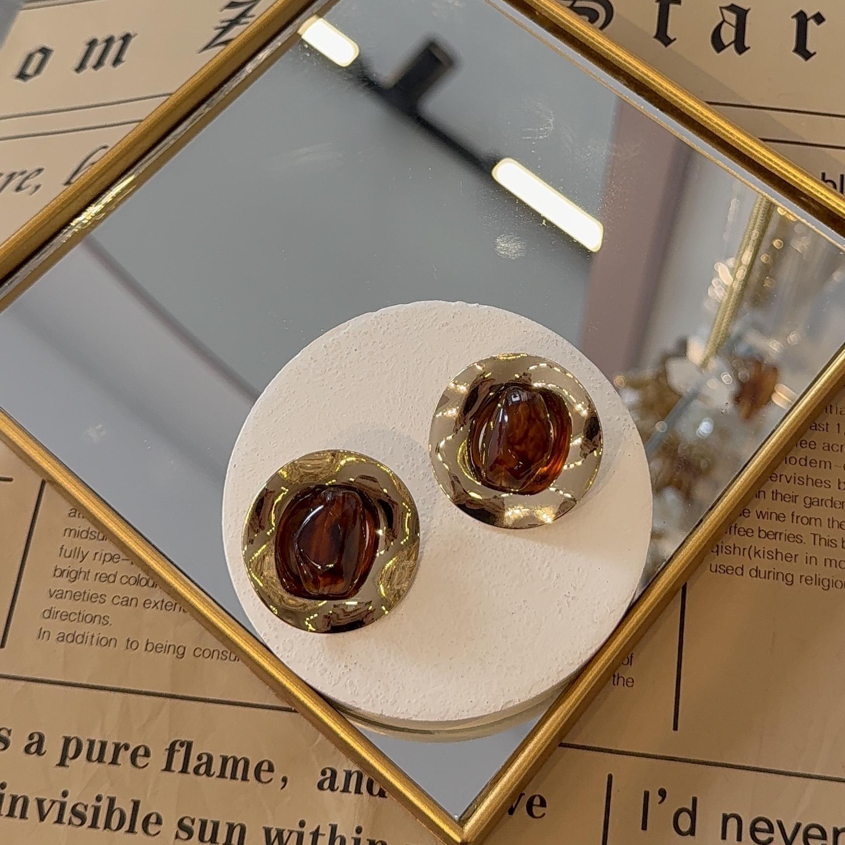 Yuvarlak Plaka Kahverengi Küpe